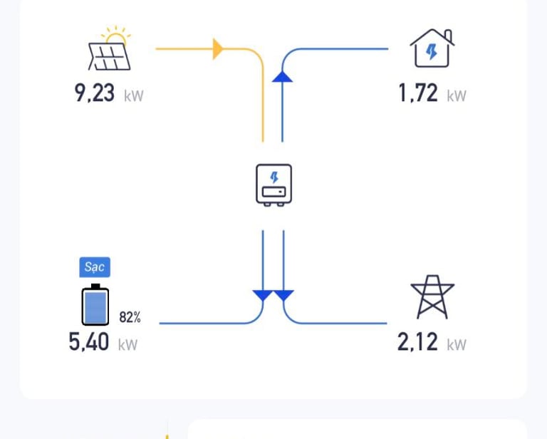 Các hệ thống chúng tôi thiết kế đều đạt hiệu suất rất cao nhờ tối ưu hóa từng yếu tố như hướng tấm pin, góc nghiêng, chia string và mppt hợp lý... Kết quả là hệ 8.5kwp cũng có thể cho hiệu suất vượt đỉnh lên tới 9,23kw khi nắng tốt (như trên hình)