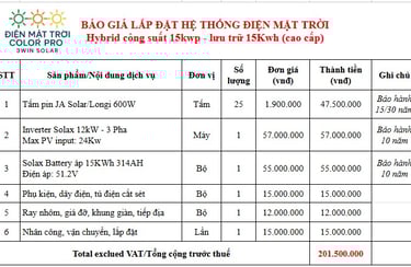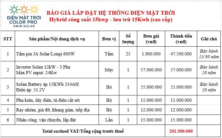 Bảng giá hệ 15kwp 3 pha siêu bảo hành