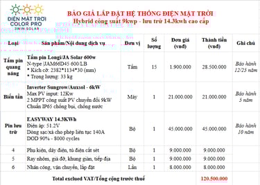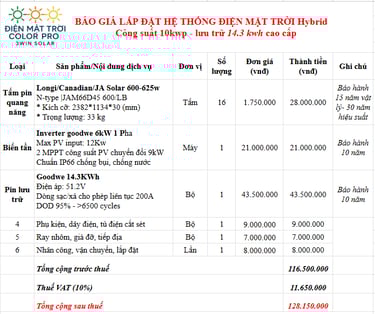 Bảng Giá Hệ Thống Điện Mặt Trời 10kWp Hybrid
