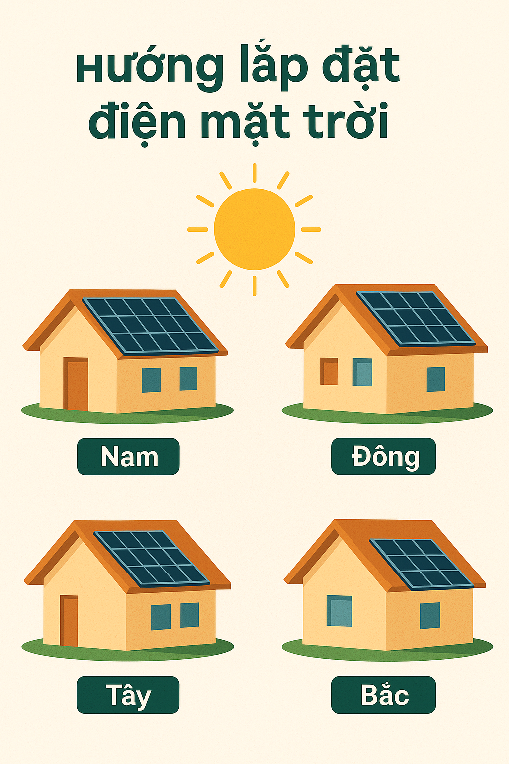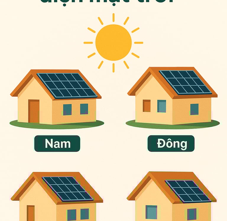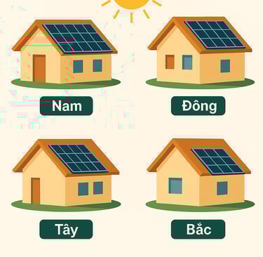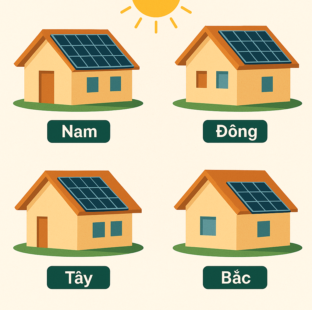 Hướng Đông: Đón nắng tốt vào buổi sáng, phù hợp nếu nhu cầu tiêu thụ điện cao vào đầu ngày.