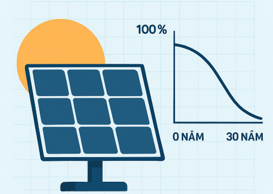 👉 Trên thực tế, tấm pin không “hỏng đột ngột”, mà giảm dần công suất theo thời gian.